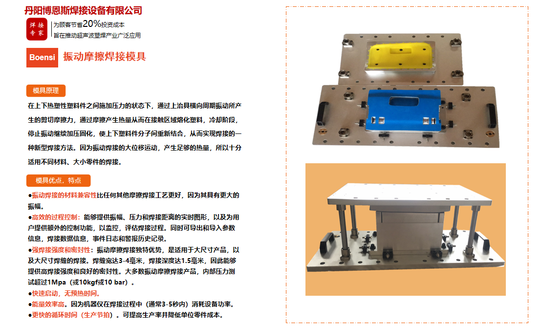 丹陽(yáng)博恩斯焊接設(shè)備有限公司是塑料焊接領(lǐng)域集研發(fā)設(shè)計(jì)、生產(chǎn)制造、銷售服務(wù)為一體的企業(yè)。公司自成立以來(lái)堅(jiān)持“以人為本”的理念,組織了一支強(qiáng)大的技術(shù)研發(fā)團(tuán)隊(duì),攜多年來(lái)積累的豐富經(jīng)驗(yàn),并結(jié)合國(guó)際先進(jìn)塑料焊接技術(shù),根據(jù)市場(chǎng)需要,不斷開(kāi)發(fā)具有核心競(jìng)爭(zhēng)力的新產(chǎn)品。公司具有很強(qiáng)的非標(biāo)機(jī)械研發(fā)、設(shè)計(jì)、生產(chǎn)能力,可為廣大客戶定制各類專用機(jī)械設(shè)備。公司設(shè)計(jì)生產(chǎn)的塑料焊接設(shè)備已廣泛應(yīng)用于汽車、電子、家電、醫(yī)療器械、無(wú)紡布...